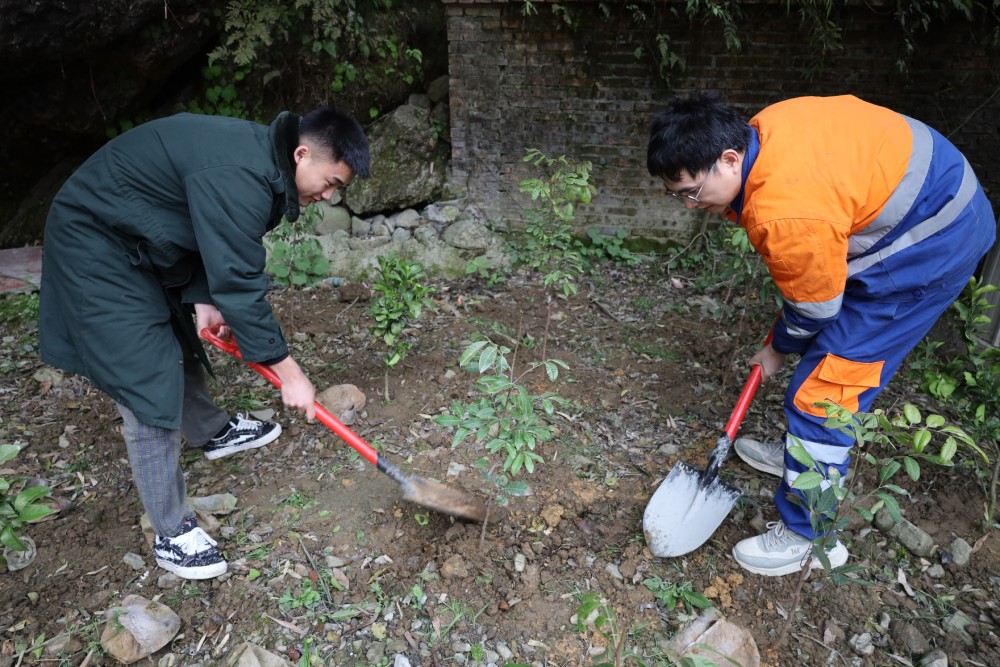 ? ? ? ?參與人員分組協(xié)作,開展植樹作業(yè)。大家揮鍬鏟土、扶苗填坑、培土澆水,現(xiàn)場一片熱火朝天的勞動景象。經(jīng)過兩個多小時的辛勤勞動,共栽植果樹、沙樹等各類苗木30余株,為礦山生態(tài)注入綠色動能。