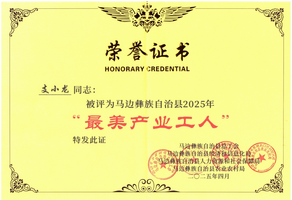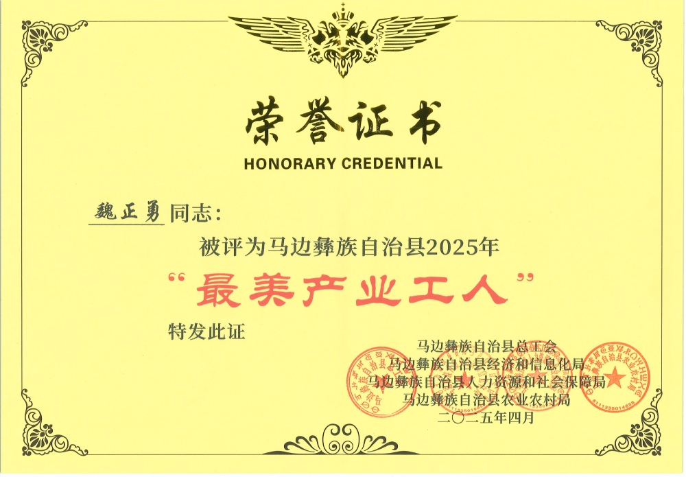 ? ? ? ?蜀能礦產(chǎn)公司三號礦山生產(chǎn)合同科負(fù)責(zé)人支小龍、磷酸鐵鋰廠生產(chǎn)管理中心設(shè)備工程師辜小宇、磷酸鐵鋰廠生產(chǎn)管理中心氣碎崗組長魏正勇榮獲馬邊2025年“最美產(chǎn)業(yè)工人”稱號,并于2025年4月29日在馬邊彝族自治縣慶祝中華全國總工會成立100周年大會上接受頒獎。