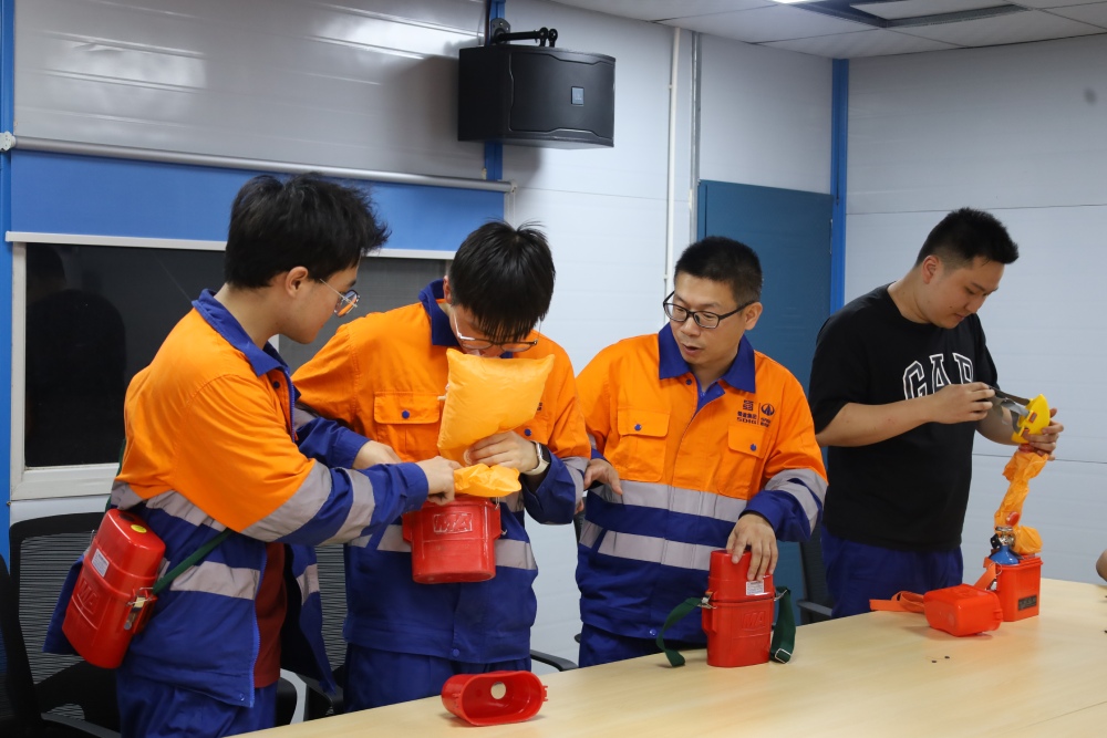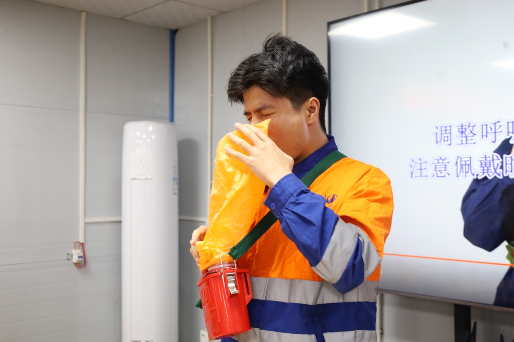 ? ? ? ?隨后,在會議室對全體下井人員進(jìn)行自救器實(shí)操培訓(xùn),培訓(xùn)從摸索背帶、到啟動裝置、平穩(wěn)呼吸,每一個動作分解教學(xué),讓下井人員反復(fù)訓(xùn)練,形成肌肉記憶。為檢驗(yàn)培訓(xùn)成效,對培訓(xùn)人員進(jìn)行檢查與抽考,確保每一位下井人員都能在黑暗中30秒內(nèi)“盲操作”,于危急時刻“穩(wěn)逃生”。