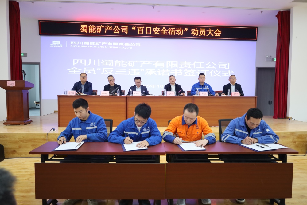 ? ? ? ?10月22日下午,蜀能礦產(chǎn)在磷酸鐵鋰廠多功能廳召開“百日安全活動”動員大會。公司黨支部書記、董事長徐開貴出席會議并講話,會議由黨支部副書記、總經(jīng)理吳太茂主持。