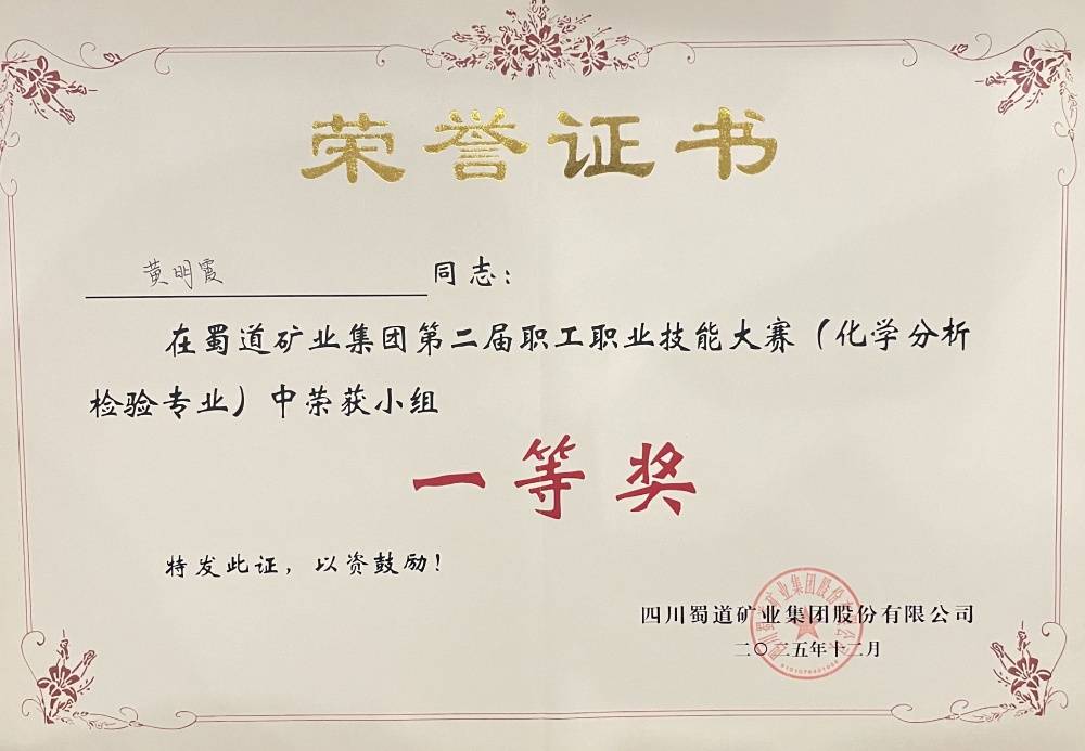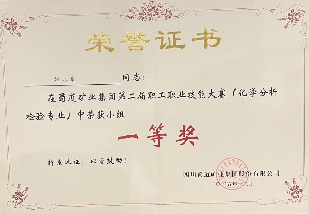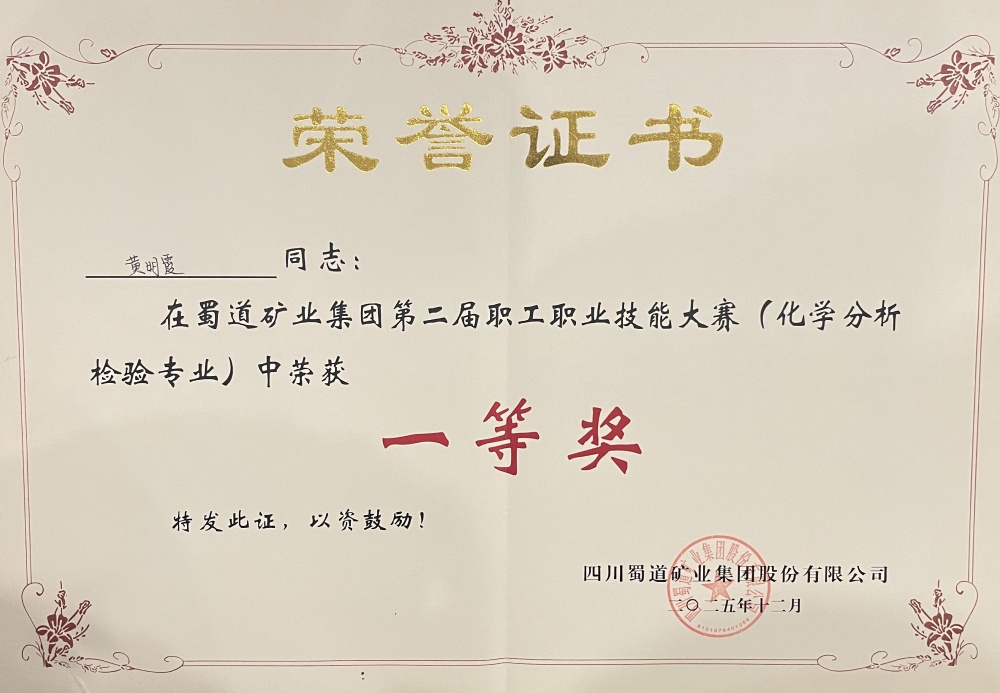 ? ? ? ?12月19日,蜀道礦業(yè)集團(tuán)第二屆職工職業(yè)技能大賽(化學(xué)分析檢驗(yàn)專業(yè))圓滿落幕。本次大賽圍繞化學(xué)檢驗(yàn)員崗位核心能力設(shè)置專業(yè)知識測試,聚焦化學(xué)分析檢測中的關(guān)鍵環(huán)節(jié)——標(biāo)準(zhǔn)溶液配制與標(biāo)定、數(shù)據(jù)處理與分析等典型工作任務(wù),匯聚了來自7家公司的12支隊(duì)伍。經(jīng)過為期兩天的層層角逐,蜀能礦產(chǎn)三號礦山技術(shù)質(zhì)量科黃明霞、劉小晴憑借扎實(shí)的理論功底和規(guī)范的實(shí)操技能斬獲團(tuán)隊(duì)一等獎。同時,黃明霞獲個人一等獎,劉小晴獲個人三等獎。