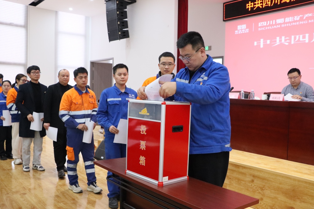 ? ? ? ?大會(huì)認(rèn)真聽(tīng)取了上一屆支部委員會(huì)任期工作報(bào)告,審議通過(guò)了《中國(guó)共產(chǎn)黨四川蜀能礦產(chǎn)有限責(zé)任公司黨員大會(huì)選舉辦法》、監(jiān)票人、計(jì)票人以及第一屆黨總支委員會(huì)委員候選人建議名單,嚴(yán)格按照《中國(guó)共產(chǎn)黨章程》《中國(guó)共產(chǎn)黨基層組織選舉工作暫行條例》有關(guān)規(guī)定和程序,采取無(wú)記名投票方式和差額選舉辦法現(xiàn)場(chǎng)投票,選舉產(chǎn)生了五名第一屆黨總支委員會(huì)委員。