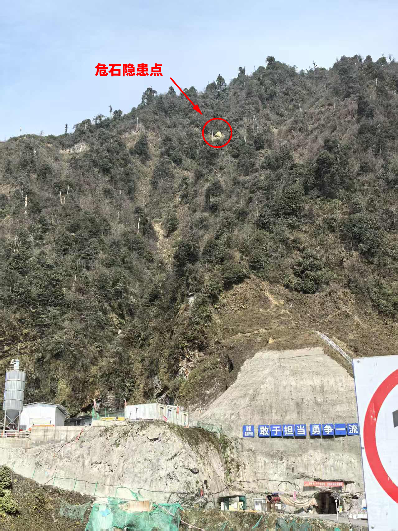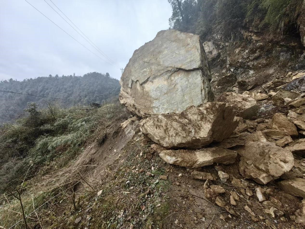 ? ? ? ?春節(jié)假日期間,蜀能礦產三號礦山在值班值守動態(tài)排查中發(fā)現礦區(qū)范圍內、施工責任區(qū)范圍外一處大型危巖風險隱患,對下游村民、過往行人及三號礦山1645工業(yè)場地構成嚴重威脅。接報后公司迅速啟動應急預案,與地方黨委政府高效聯動協(xié)同作戰(zhàn),在四十八小時內科學處置并從根源上排除隱患風險,有效守護了礦區(qū)及周邊群眾生命財產安全。