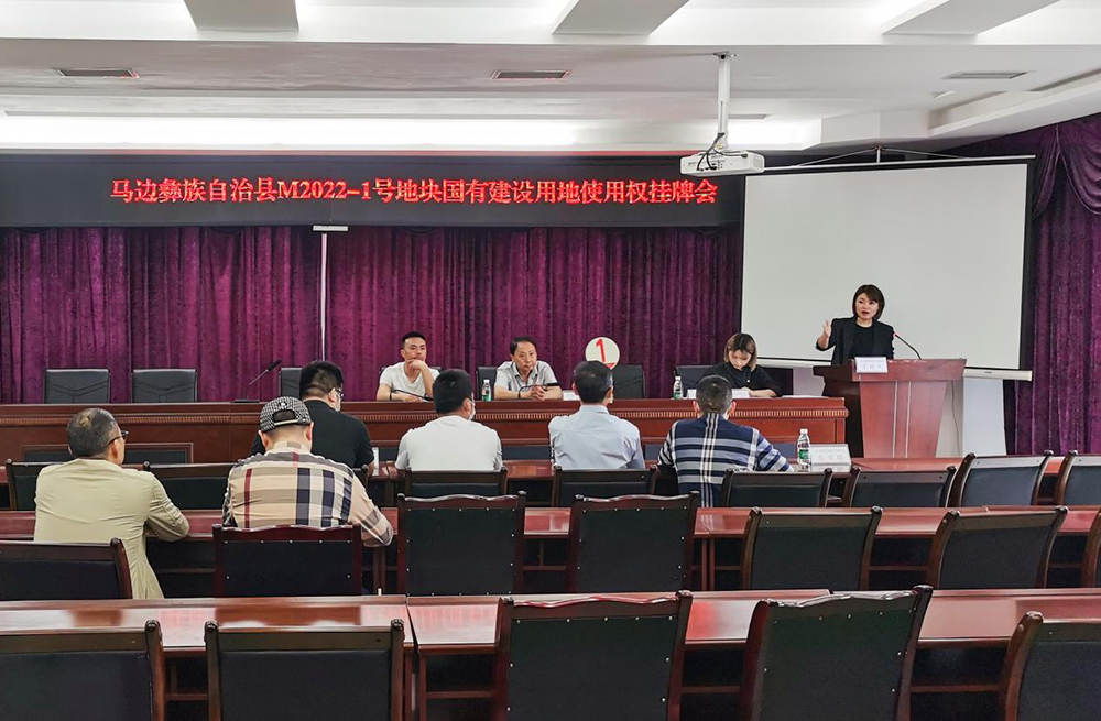 ? ? ?5月9日上午9:30,馬邊縣自然資源局五樓會議室舉行馬邊彝族自治縣M2022-1號地塊國有建設用地使用權掛牌會,蜀能礦產(chǎn)公司副總經(jīng)理韓方建帶隊參與競拍并成功拍得該宗建設用地。