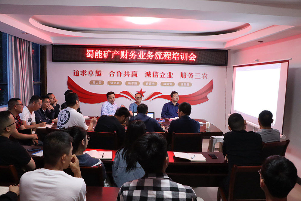 ? ? ? ?為增強(qiáng)管理融合,促進(jìn)公司財務(wù)管理工作規(guī)范化,5月16日,蜀能礦產(chǎn)公司召開財務(wù)業(yè)務(wù)流程培訓(xùn)會。公司領(lǐng)導(dǎo)班子成員,全體員工參加培訓(xùn)。